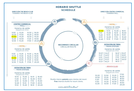 Un servicio de autobús gratuito es proporcionado por Higueron Projects. Este autobús lanzadera puede llevarle cerca de un supermercado. Puede tomar el autobús en la parada del hotel, a menos de 200 m de la entrada principal de las Residencias. El tiempo de trayecto es de menos de diez minutos.