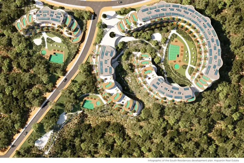 Entre los desarrollos residenciales más representativos de esta nueva generación destaca South Residences. Inspirado en las formas orgánicas de la naturaleza, este proyecto utiliza materiales nobles como el acero cortén, la piedra natural y la madera. Su arquitectura orgánica se integra totalmente en el paisaje mediterráneo, ofreciendo vistas abiertas al mar que garantizan la exclusividad del activo. Para quienes buscan propiedades para comprar en Málaga este tipo de proyectos representa una evolución clara del mercado residencial de la Costa del Sol.