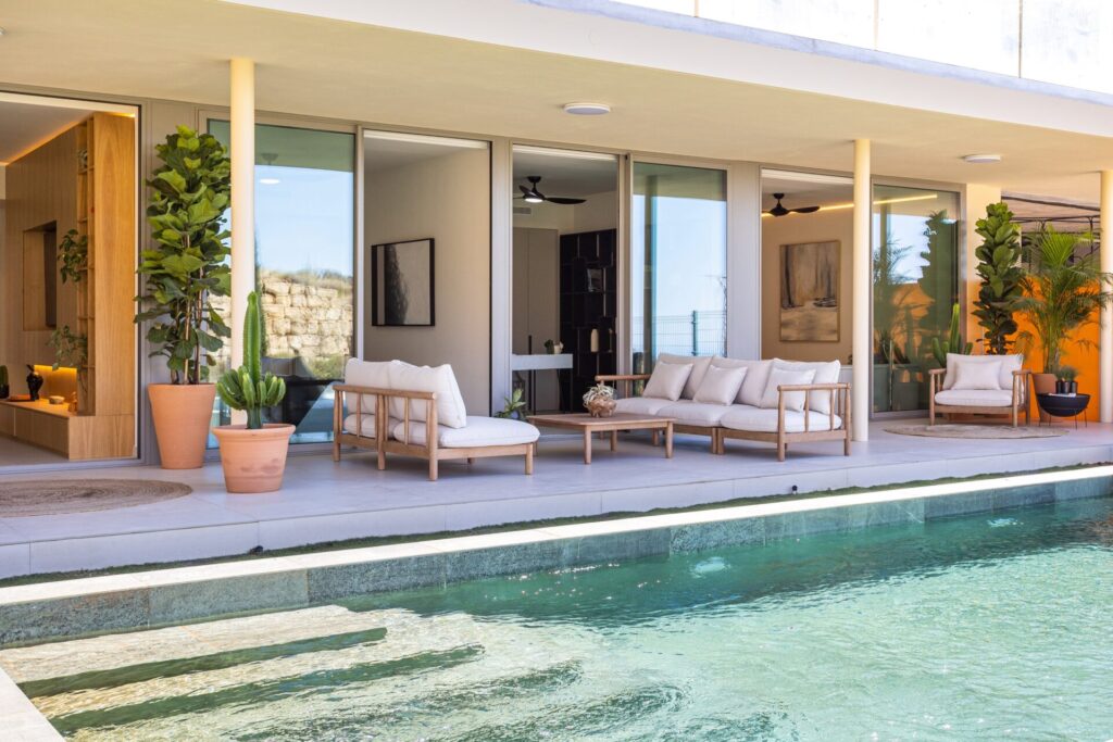 Esta garden villa se ubica en un entorno residencial tranquilo junto a la Sierra de Mijas, donde la privacidad, el espacio exterior y la conexión con la naturaleza definen el día a día, a pocos minutos de los principales servicios y de Higuerón Resort.