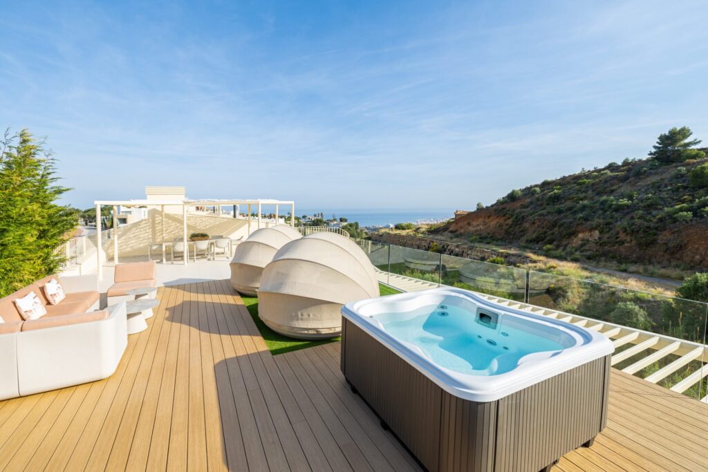 El exterior es uno de sus grandes protagonistas: terraza con jacuzzi privado y solárium, ideales para disfrutar del clima mediterráneo con total intimidad.