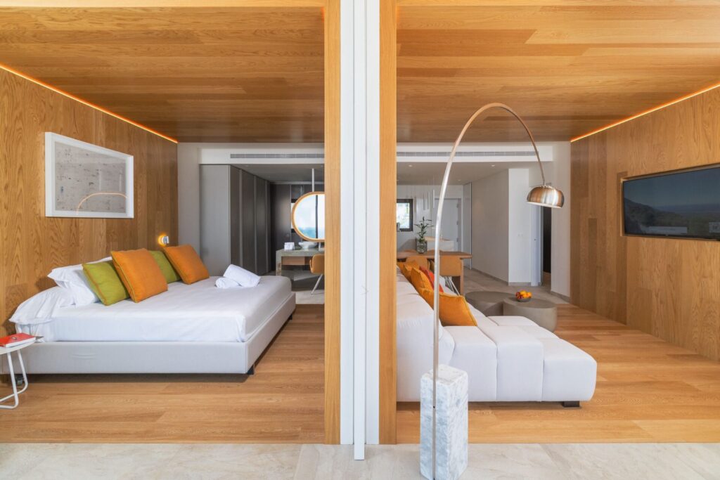El diseño interior permite la separación de espacios mediante pared móvil, aportando versatilidad y adaptabilidad según las necesidades del propietario. En el exterior, la vivienda incorpora piscina infinity privada, cocina exterior y bodega, elementos que refuerzan su carácter exclusivo y la convierten en un espacio ideal tanto para el disfrute personal como para el entretenimiento.