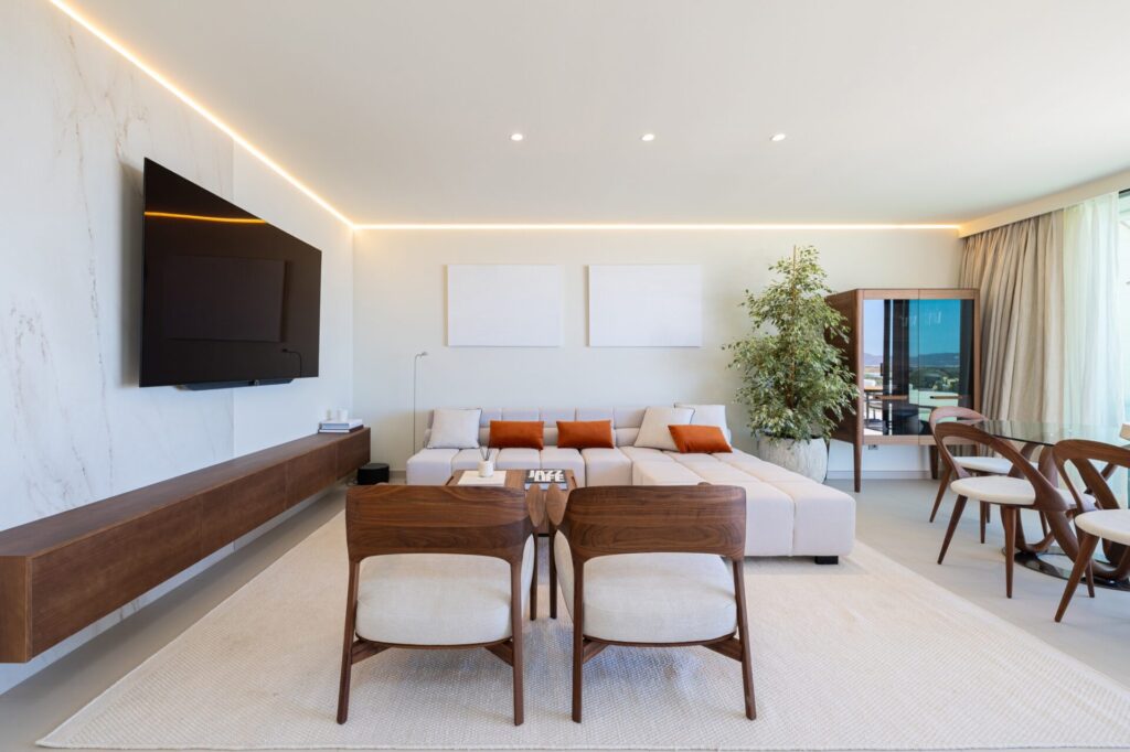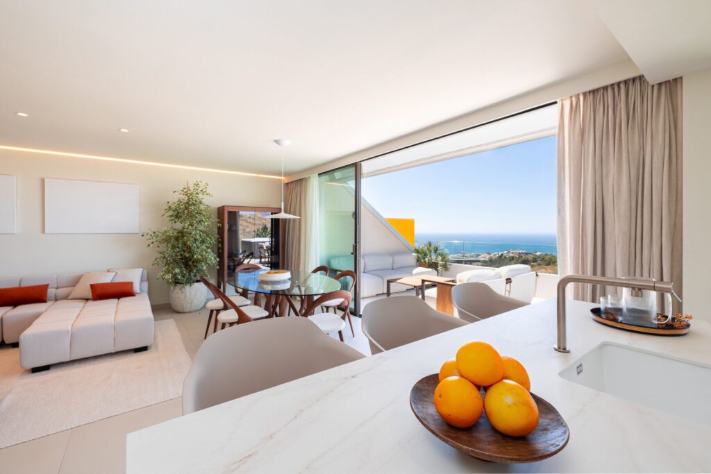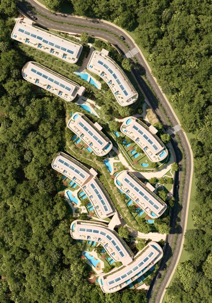 El residencial destaca por el acierto de integrar una arquitectura vanguardista en un entorno natural de más de 100.000 m² de zonas verdes, con vistas al mar Mediterráneo. Las viviendas, construidas con altos estándares de calidad, combinan madera, cerámica y aluminio, creando espacios cálidos, elegantes y llenos de luz.